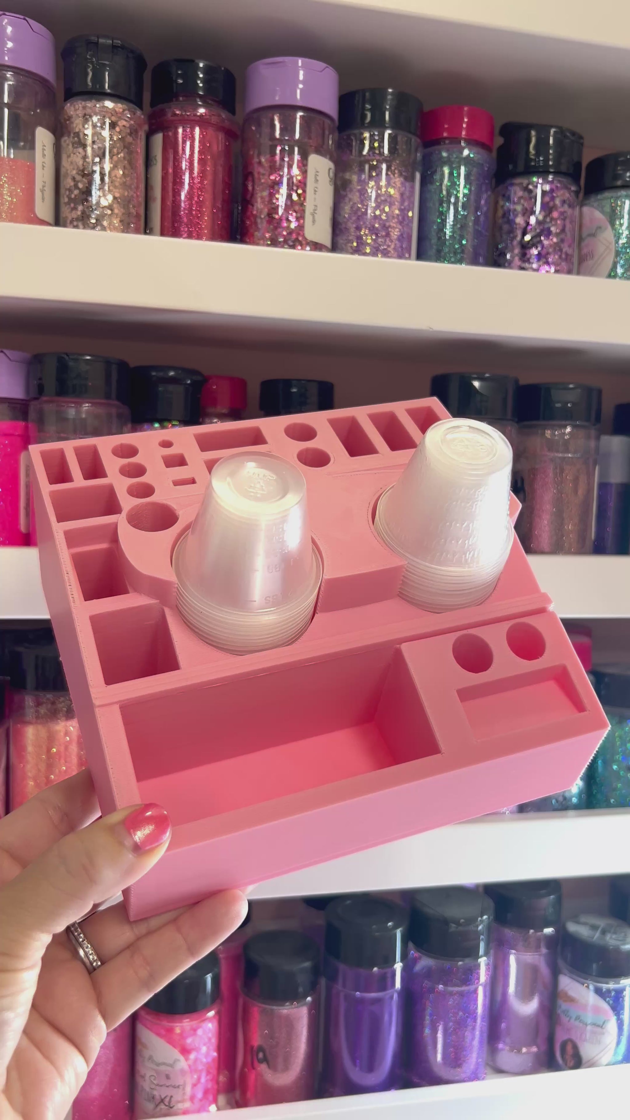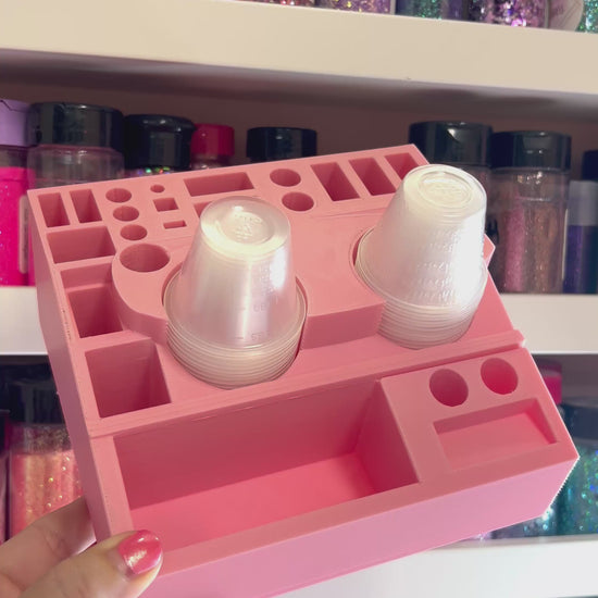 Featuring dedicated slots for resin cups, crafting tools, brushes, stir sticks, tweezers, and more, this caddie keeps everything you need within arm’s reach. Its lightweight yet durable construction makes it easy to move around your workspace, while the customizable compartments help reduce mess and maximize productivity.
